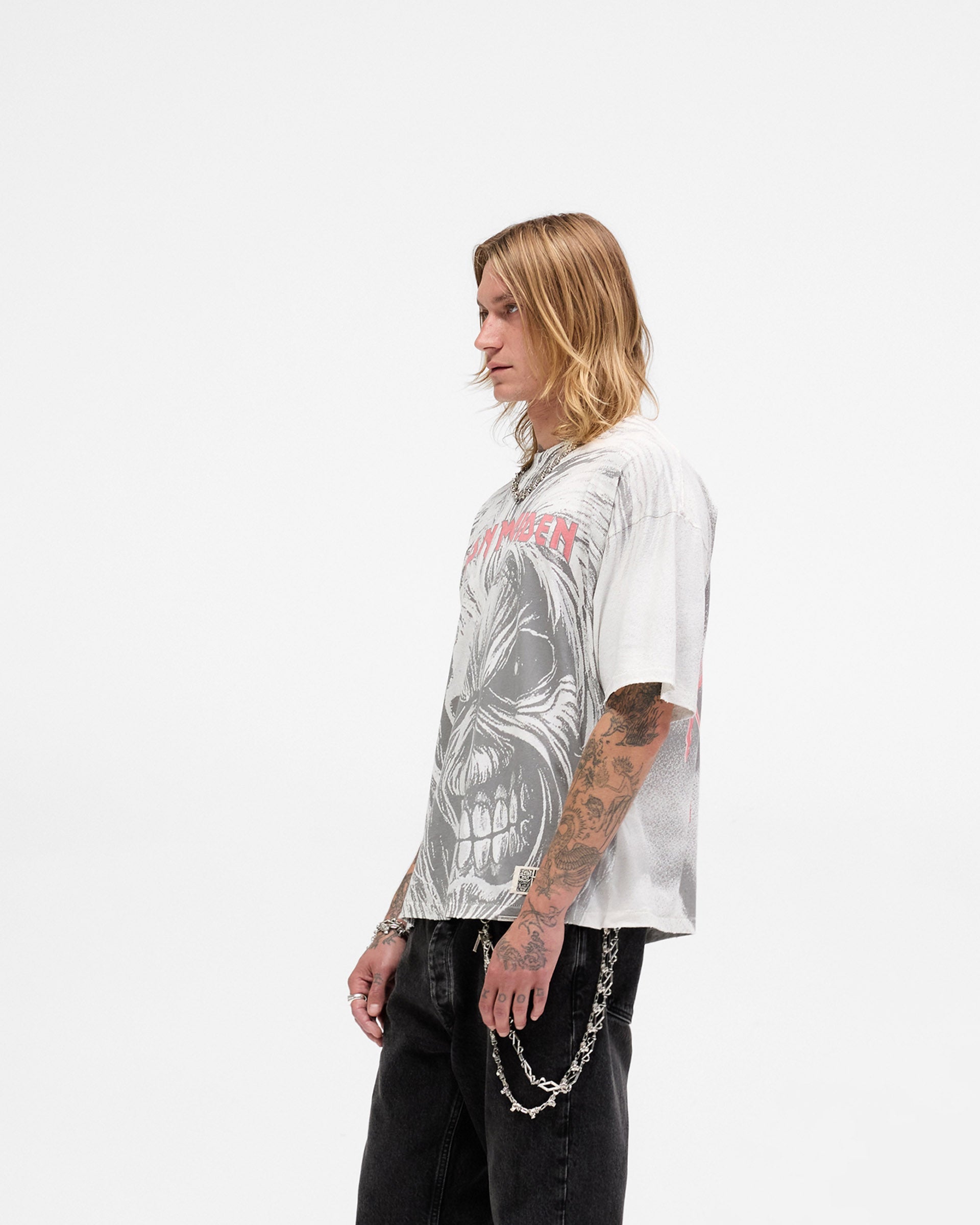 Rooted in the aggression and energy of Maiden’s world, the pieces fuse REPRESENT’s elevated streetwear design with iconic album artwork and era-defining visuals. Each garment is the result of years of obsession, crafted in close collaboration with the band to honour their legacy and ours.