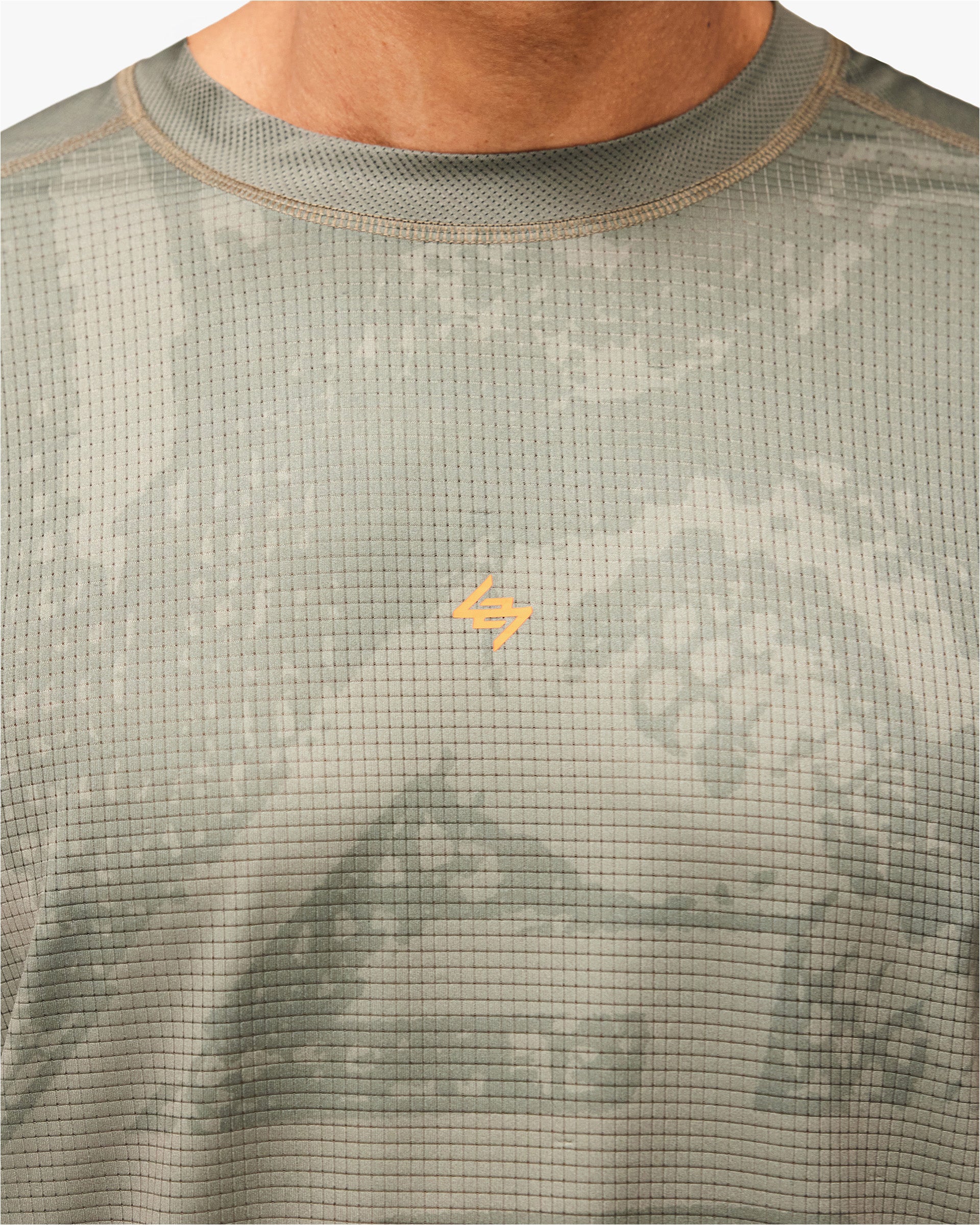 Introducing the 247 Los Angeles T-Shirt. Constructed from lightweight mesh fabric with a tonal printed finish, this tee delivers anti-bacterial properties, wicking performance and quick-dry technology for unrestricted training across disciplines. Finished with orange 247 branding and a relaxed silhouette built for movement through the city and beyond.