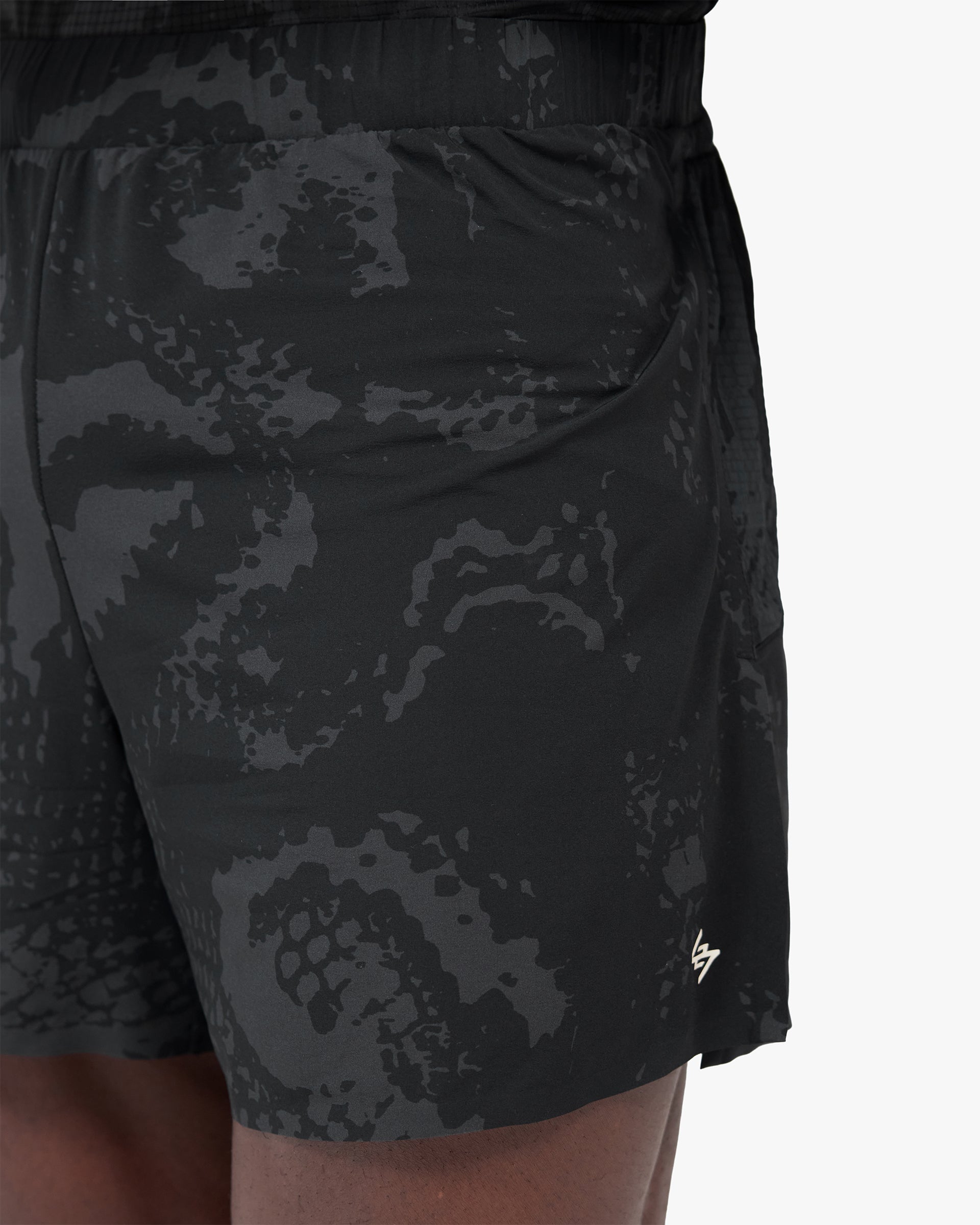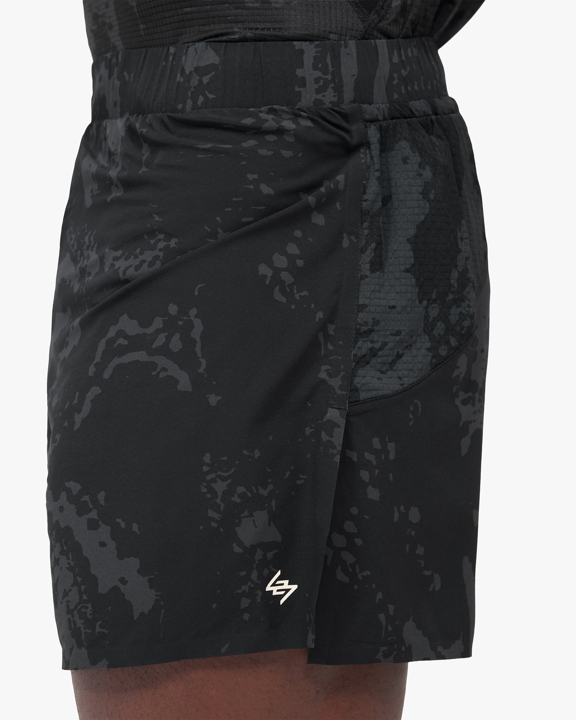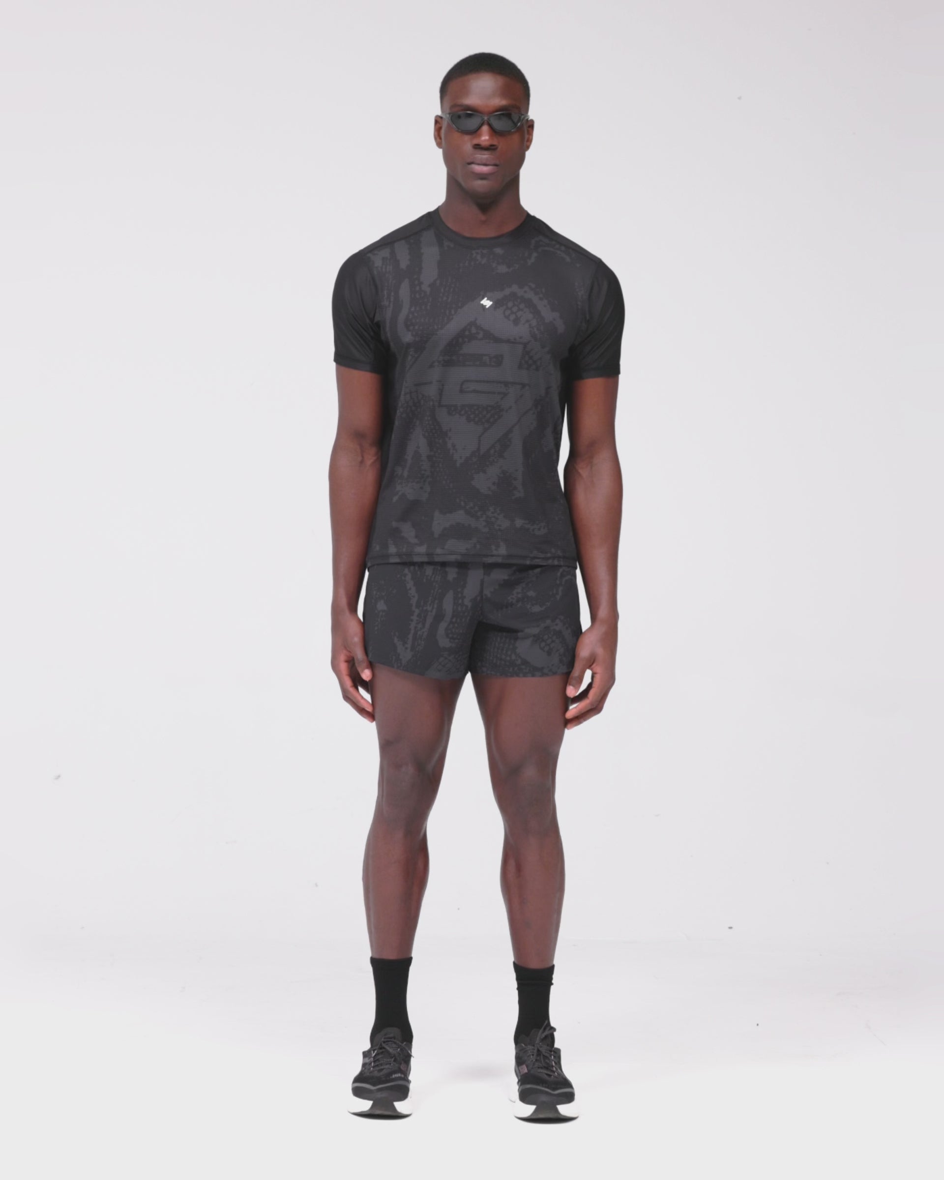 Introducing the 247 Manchester Short in Black. Designed for distance running, this lightweight short features a tonal printed finish with ripstop panelled pockets at the hip and a secure zip pocket at the rear waistband for essentials on the move. Side splits allow for unrestricted stride, while the above-knee length keeps things light and functional across every kilometre.