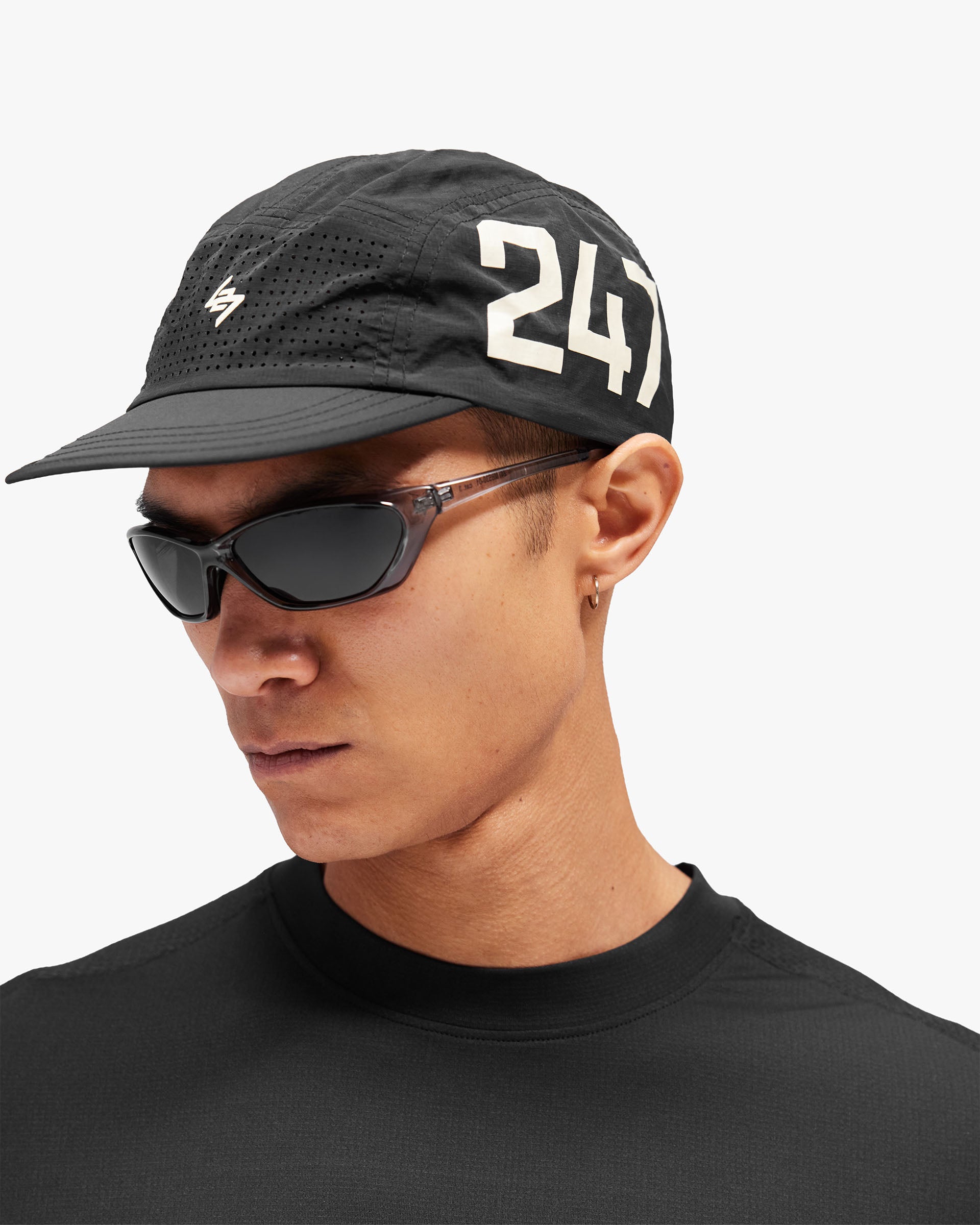 Introducing the 247 Numbers Cap in Jet Black. Engineered for hybrid training, built for athletes who train without compromise. A 5-panel construction in lightweight ripstop with a perforated front panel for breathability and airflow during high output sessions. Finished with 247 logo to the front, 247 lock-up to the side and a velcro adjustable strap to the back for a personalised fit.