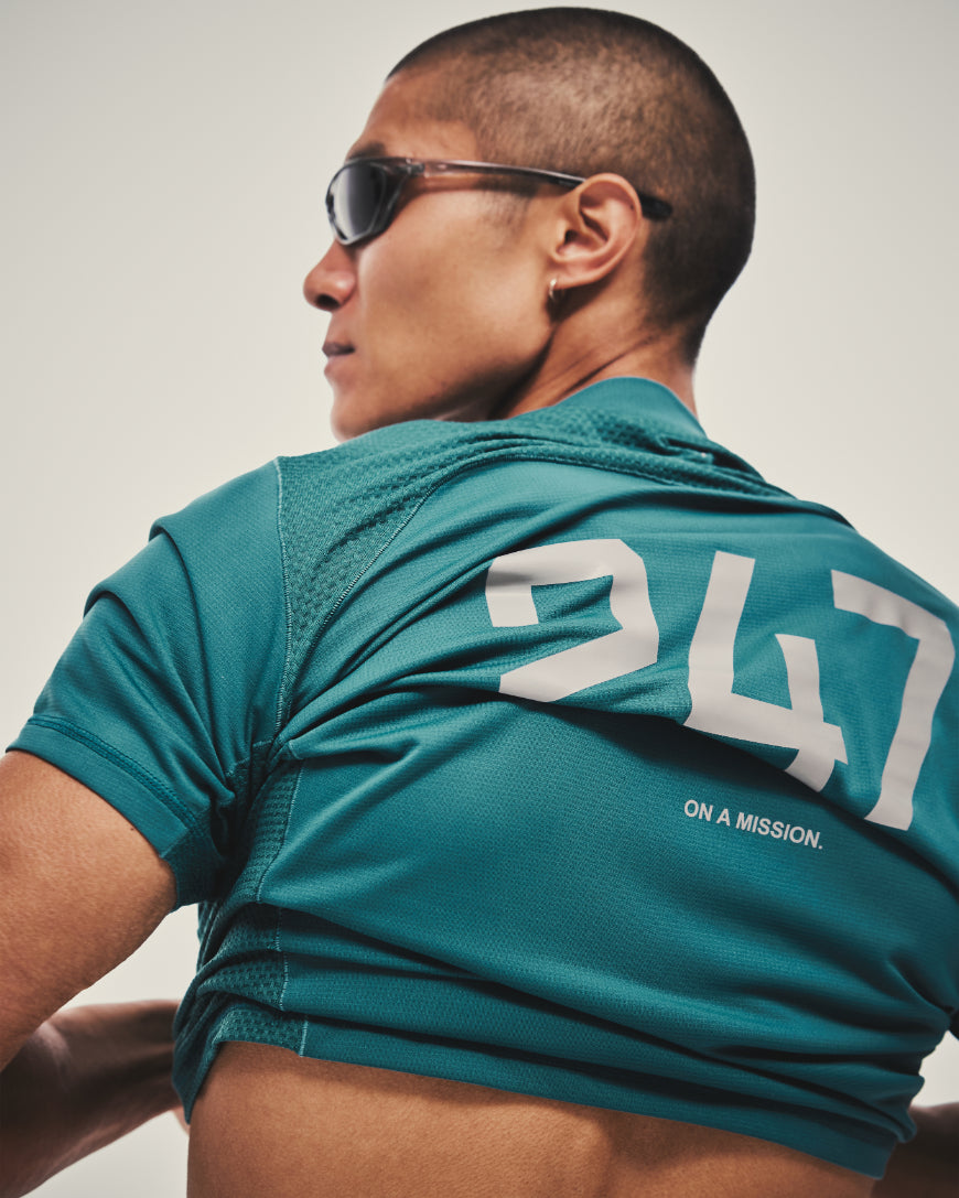 - 247 Numbers branding to chest, On A Mission lock-up to centre back