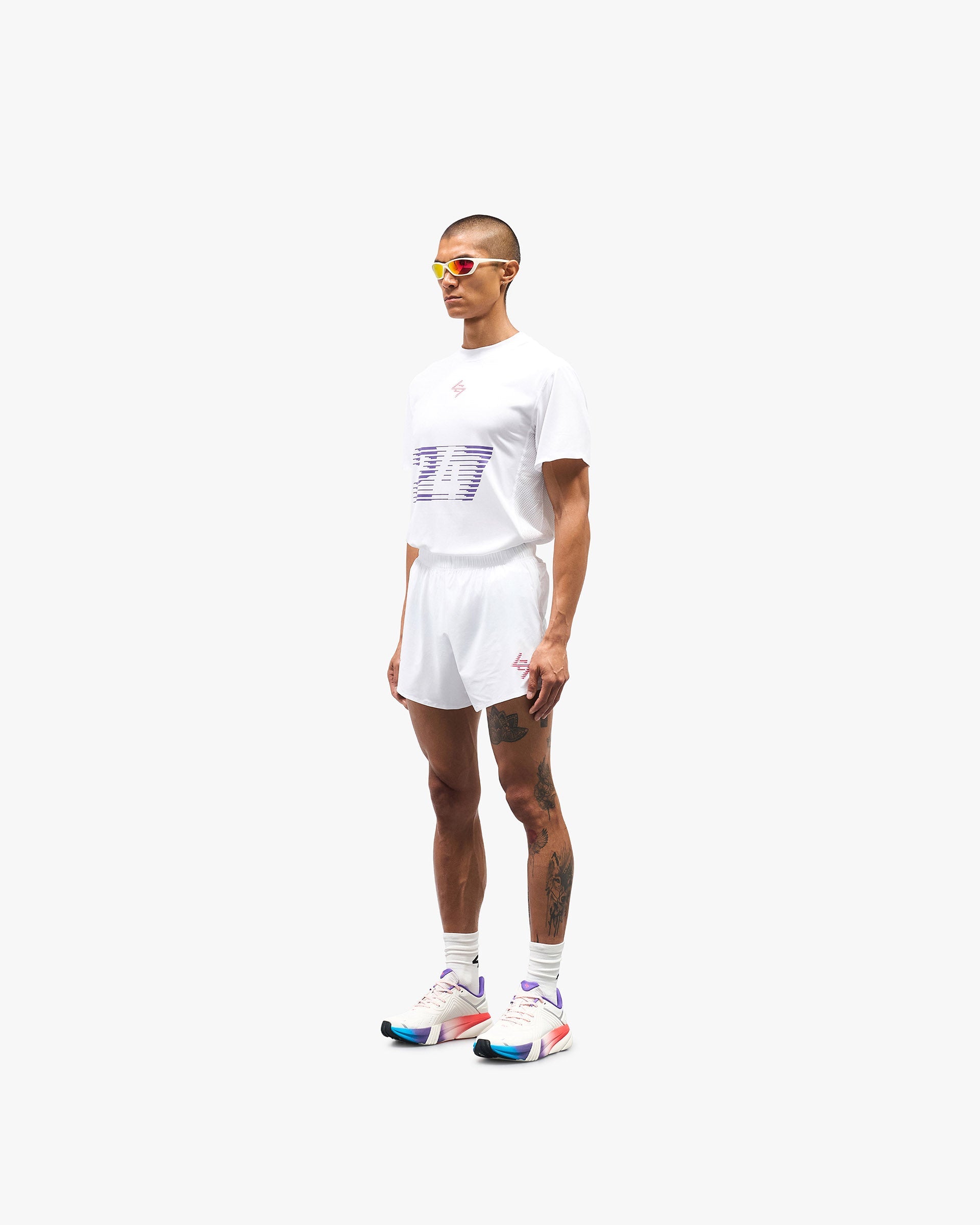 The 247 Race Marathon Short in White is crafted for performance over distance, combining ultra-light construction with technical detailing to support you through every mile. Designed with a split-leg silhouette and inner mesh liner, these shorts provide unrestricted motion, breathability, and support where it counts.