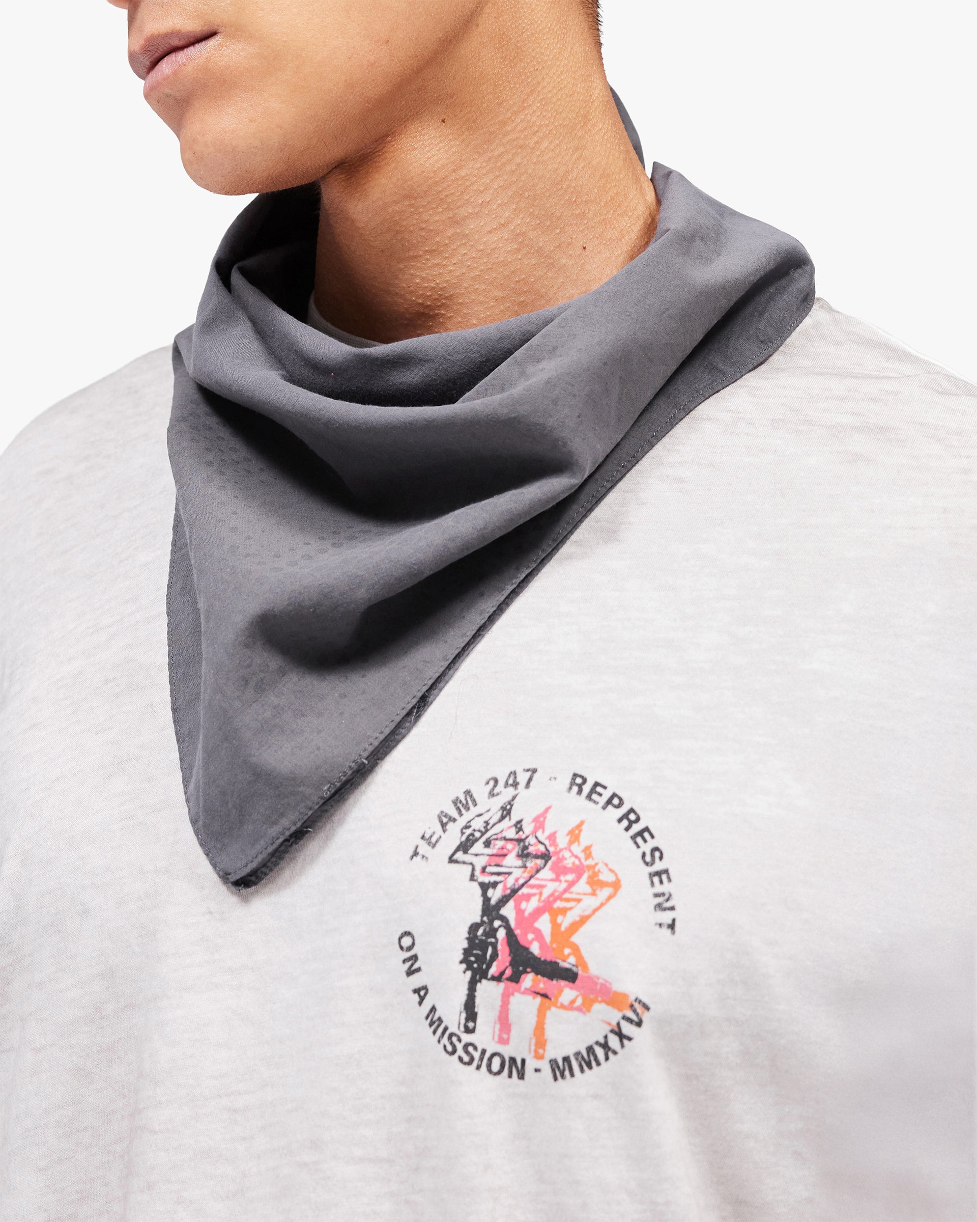 Introducing the 247 Torch Crop Tee in Bleach Wash. Cut in a boxy cropped fit from cotton slub fabric with a distressed bleach wash finish, the Torch collection references vintage athletics with a modern edge. The torch graphic pays homage to a golden era of American track and field, reimagined for the modern athlete.