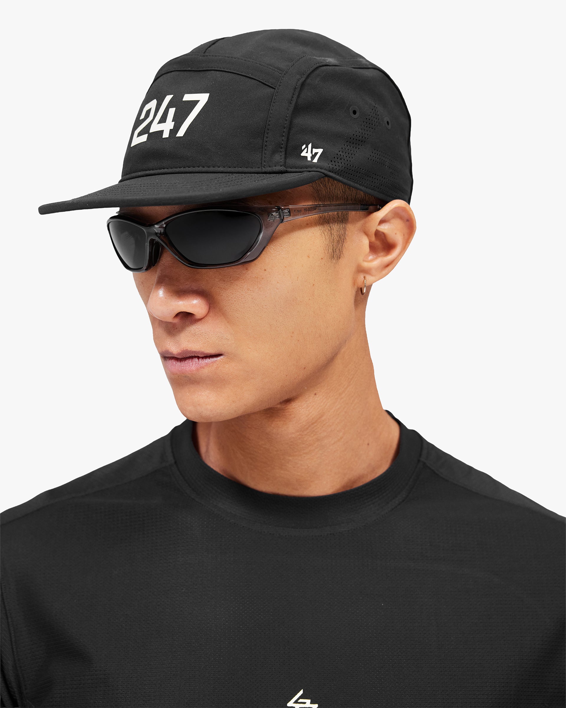 Introducing the 247 x 47 Taped Cap. A collaboration with heritage brand '47, this five-panel brrr° cap delivers cooling technology through the fabric whilst tape seam details reference vintage sportswear construction. A clip fastening provides adjustable fit.