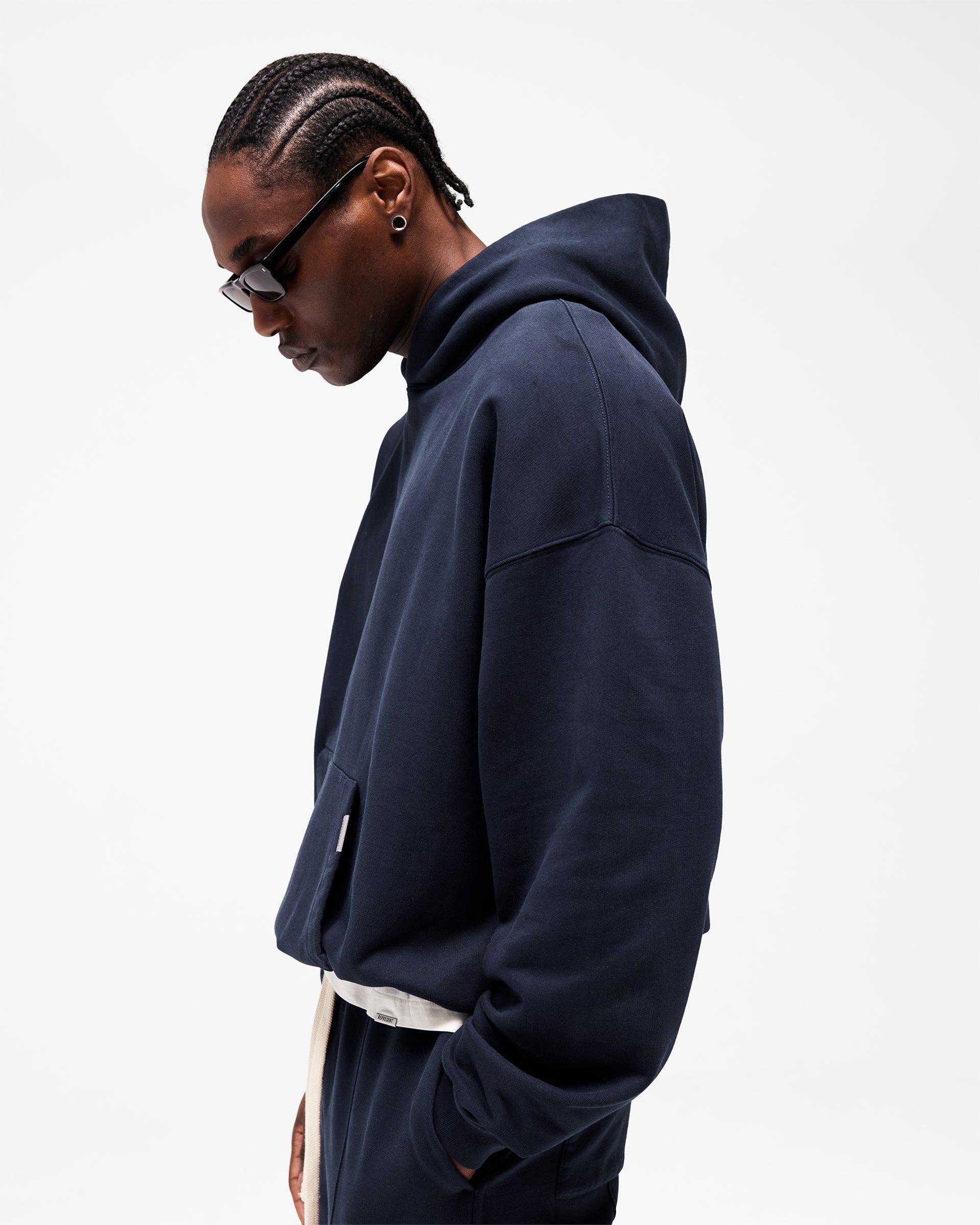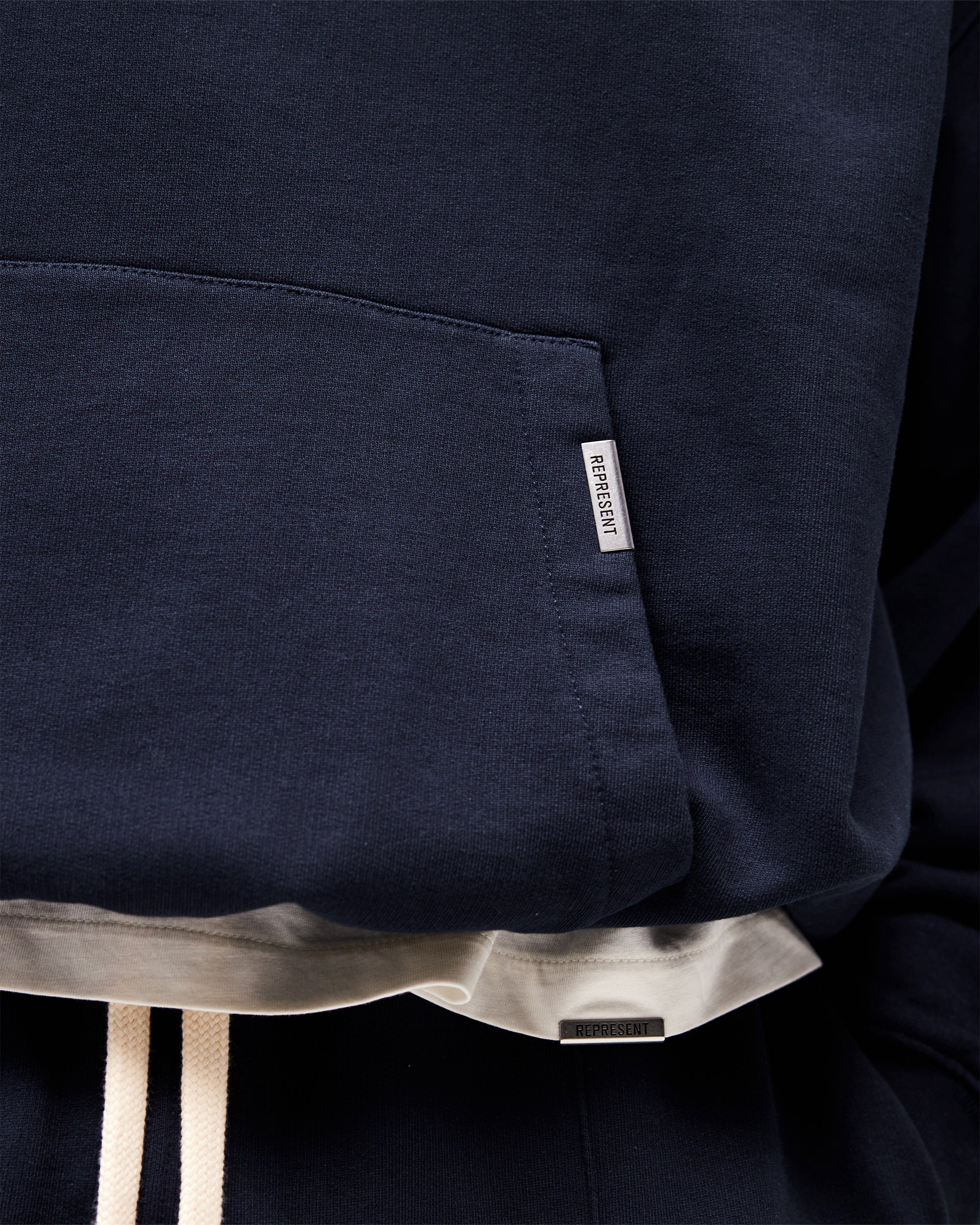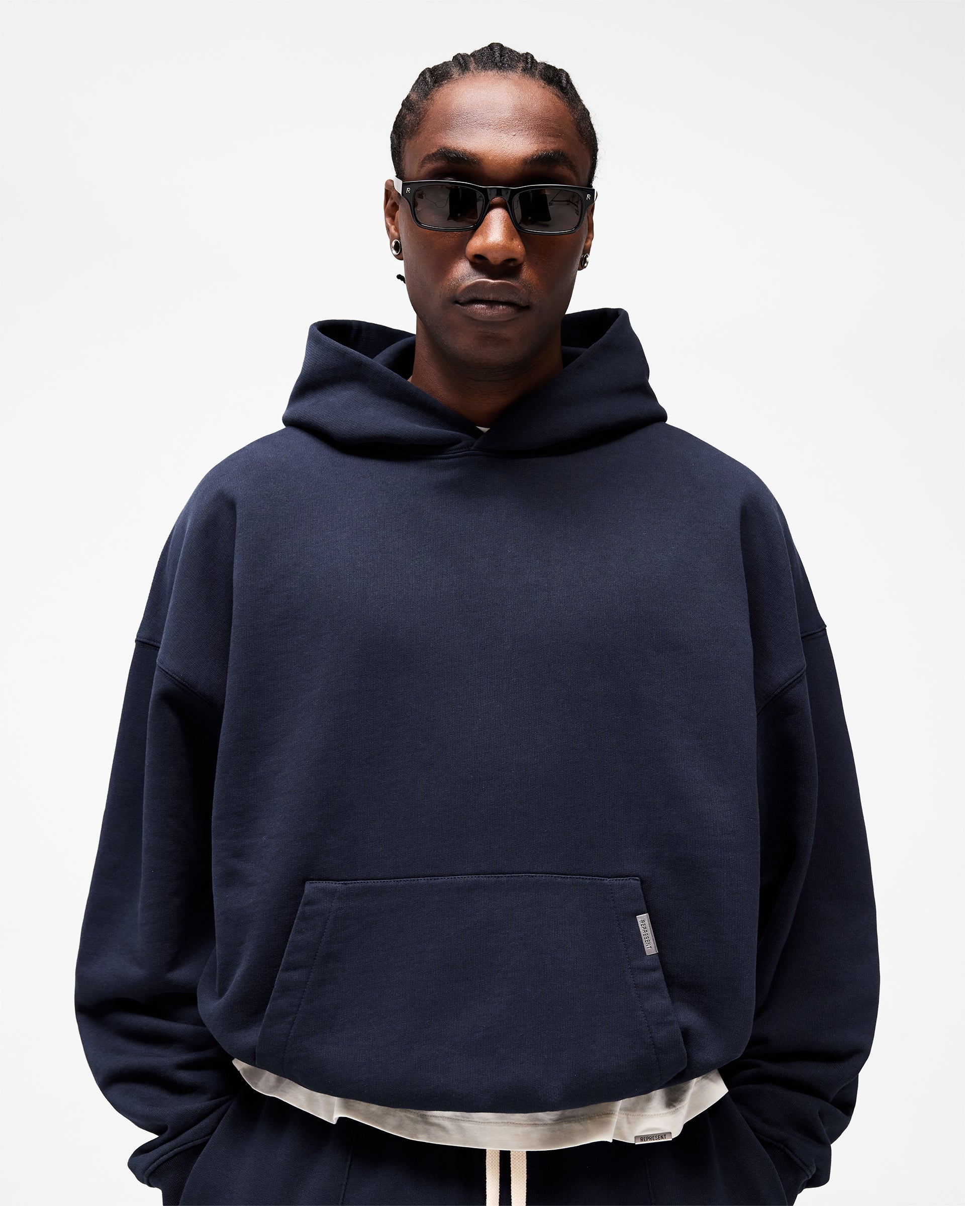 Featuring a double layer hood, kangaroo pocket and 1x1 rib to the hem and cuffs, the hoodie is built with minimal twin needle stitching throughout. Finished with the signature Represent metal bar at the pocket opening and embroidered Initial branding to the hood.