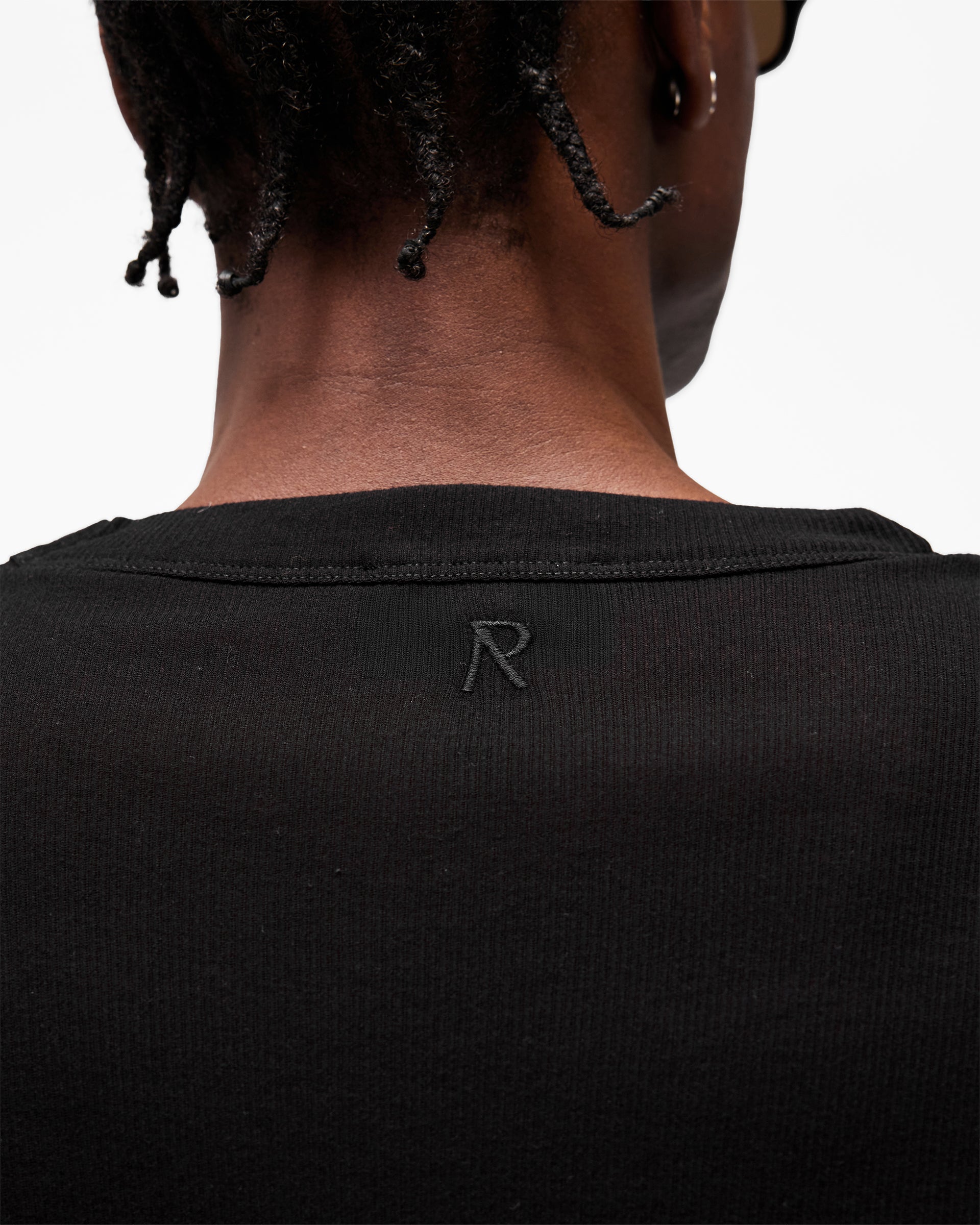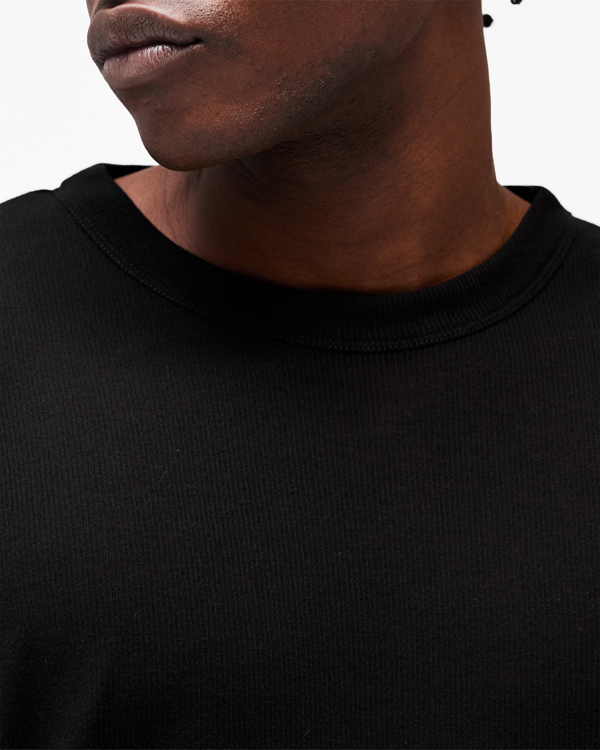 Introducing the Initial Sheer Rib Long Sleeve T-Shirt in Jet Black, a long sleeve silhouette crafted from 115gsm rib cotton for a lightweight, textured finish. The slightly wider, boxier shape delivers a contemporary fit with a relaxed feel, while Framilon tape at the seams provides stability and structure throughout.