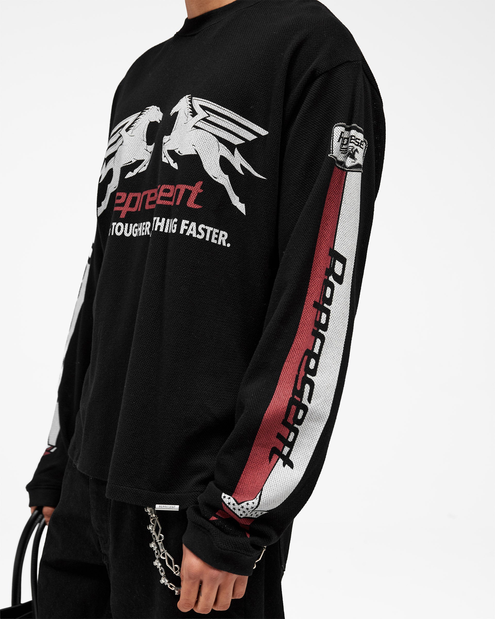 Mesh Pegasus Long Sleeve T-Shirt - Jet Black