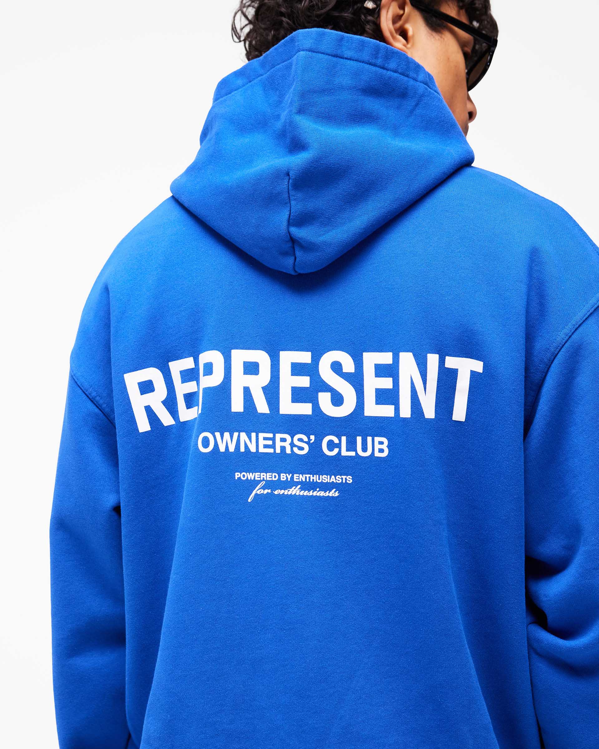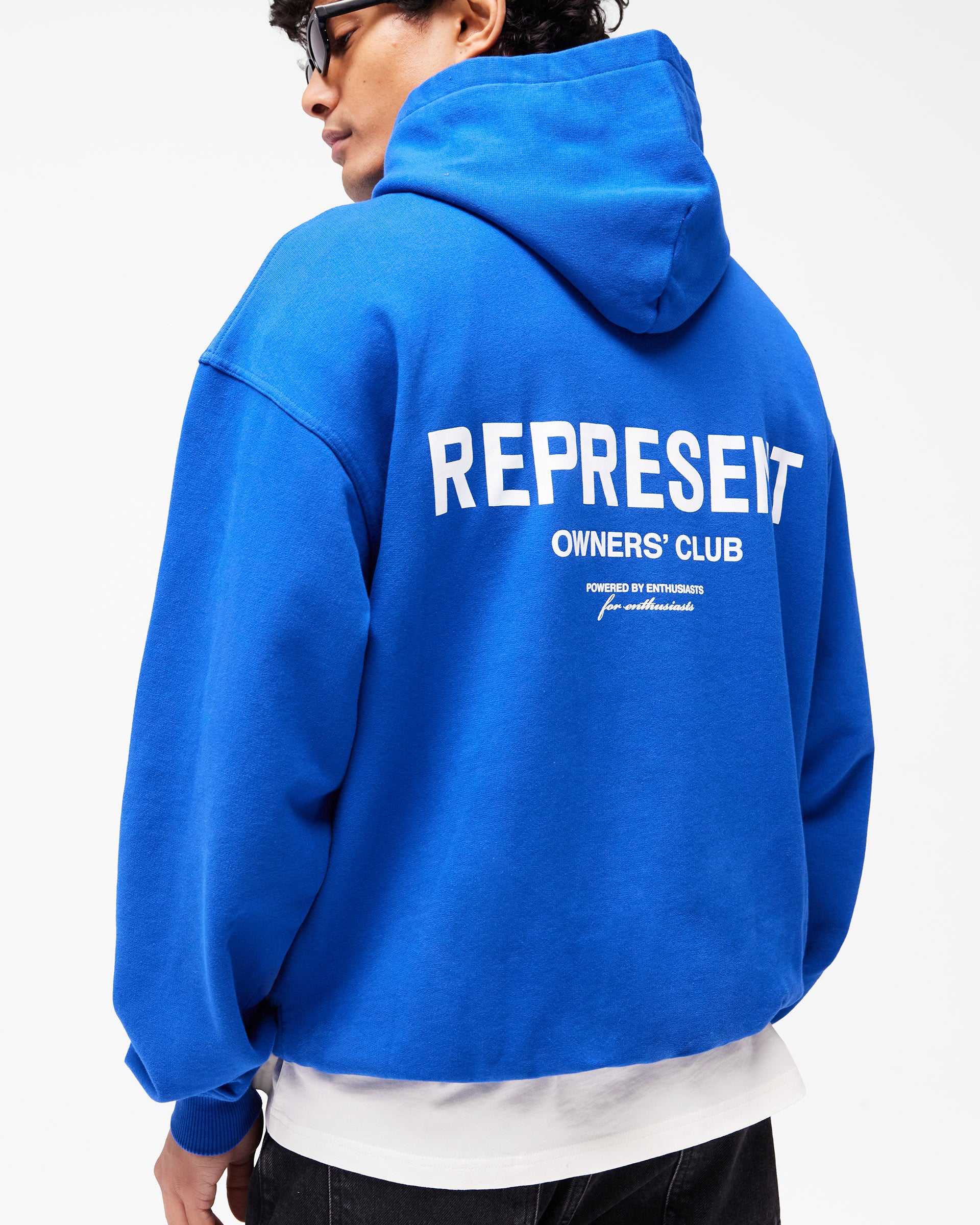 Introducing the Represent Owners Club Hoodie in Cobalt. Our most recognised piece, born in Manchester and worn worldwide. Cut from 480gsm heavyweight loopback cotton, piece dyed for depth of colour and pre-shrunk for a lived-in feel from the first wear. Owners Club branding sits to the chest and back, finished with a Cobrax popper hood, ribbed trims and our signature oversized fit that falls wide and square. Made in Portugal.