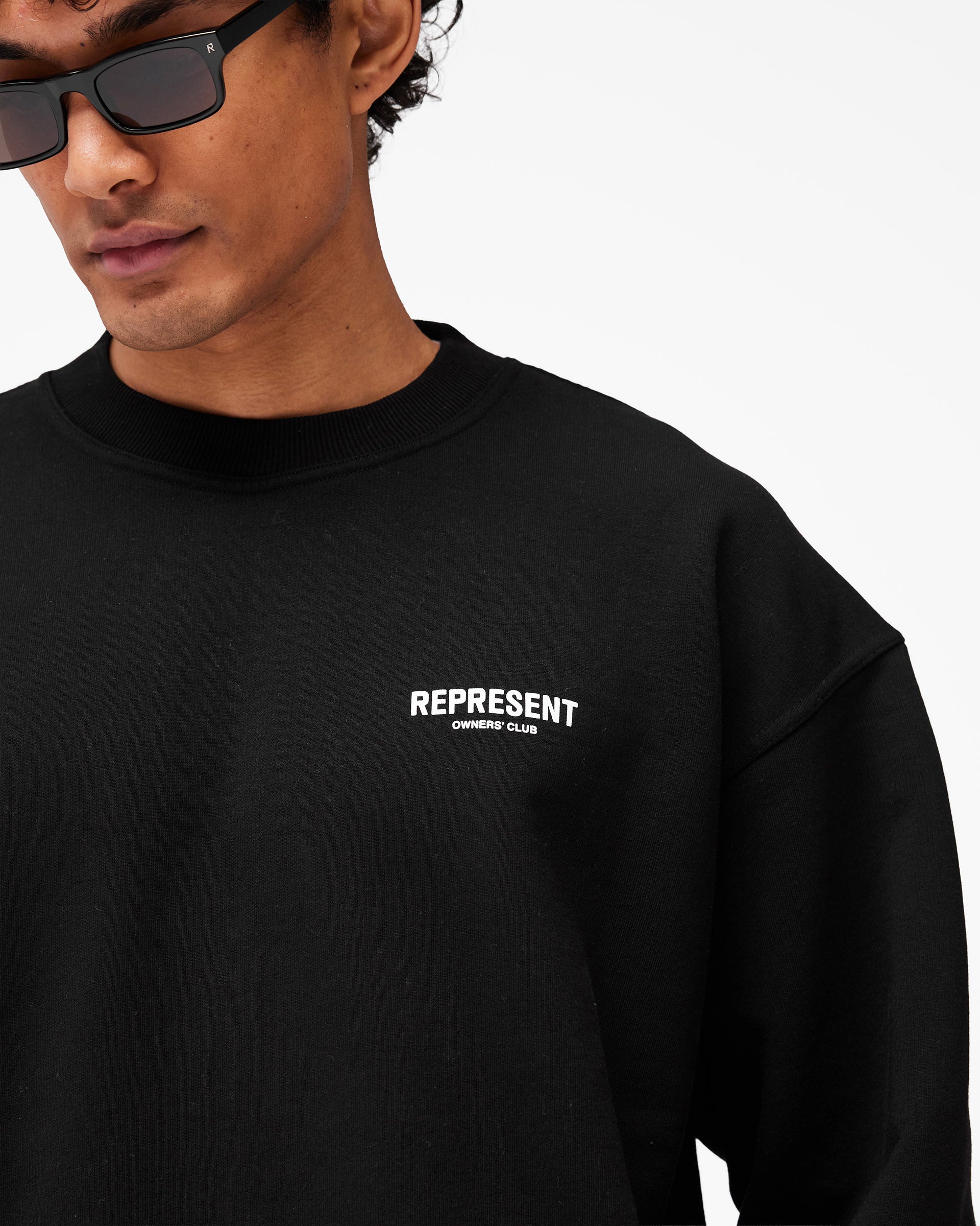 Introducing the Represent Owners Club Sweater in Black. Our most recognised collection, born in Manchester and worn worldwide. Cut from 480gsm heavyweight loopback cotton, piece dyed for depth of colour and pre-shrunk for a lived-in feel from the first wear. Owners Club branding sits to the chest and back, finished with a ribbed crewneck collar, ribbed trims and our signature oversized fit that falls wide and square.