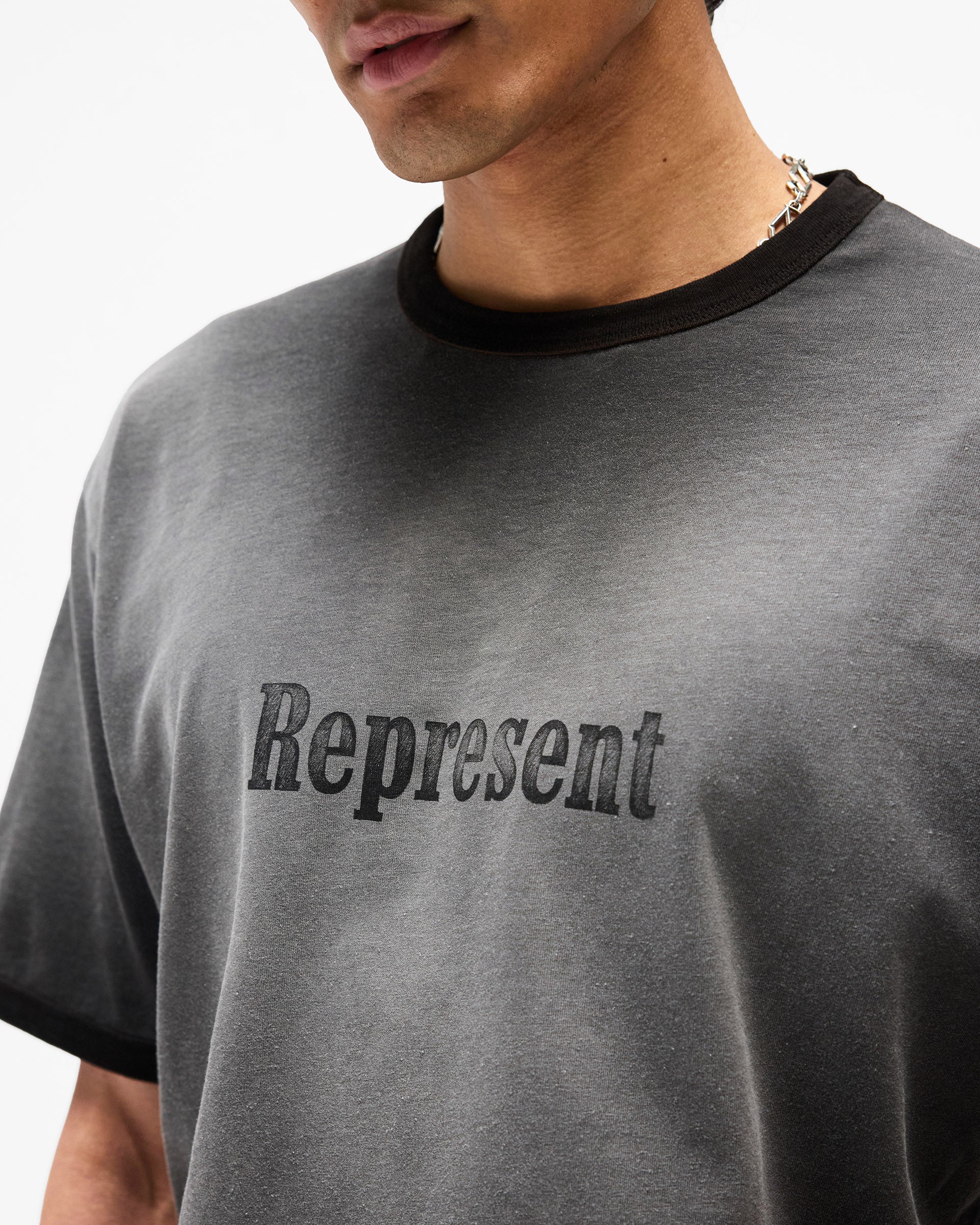 Introducing the Represent Ringer T-Shirt in Stained Black, a refined take on the classic ringer silhouette. The contrast collar and cuff define this regular fit tee, grounding it in heritage sportswear whilst maintaining contemporary refinement. The signature front graphic speaks to brand identity, applied with precision.