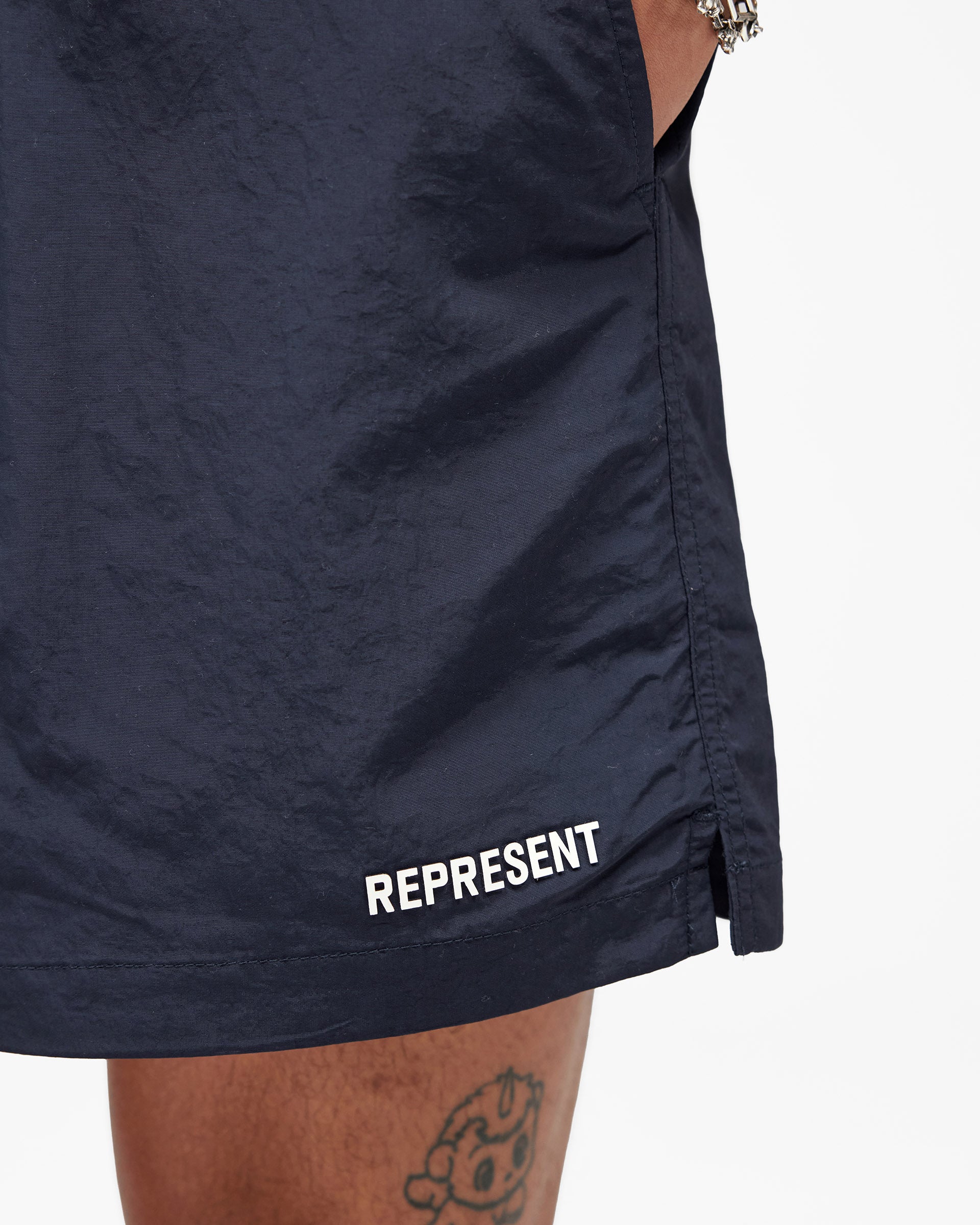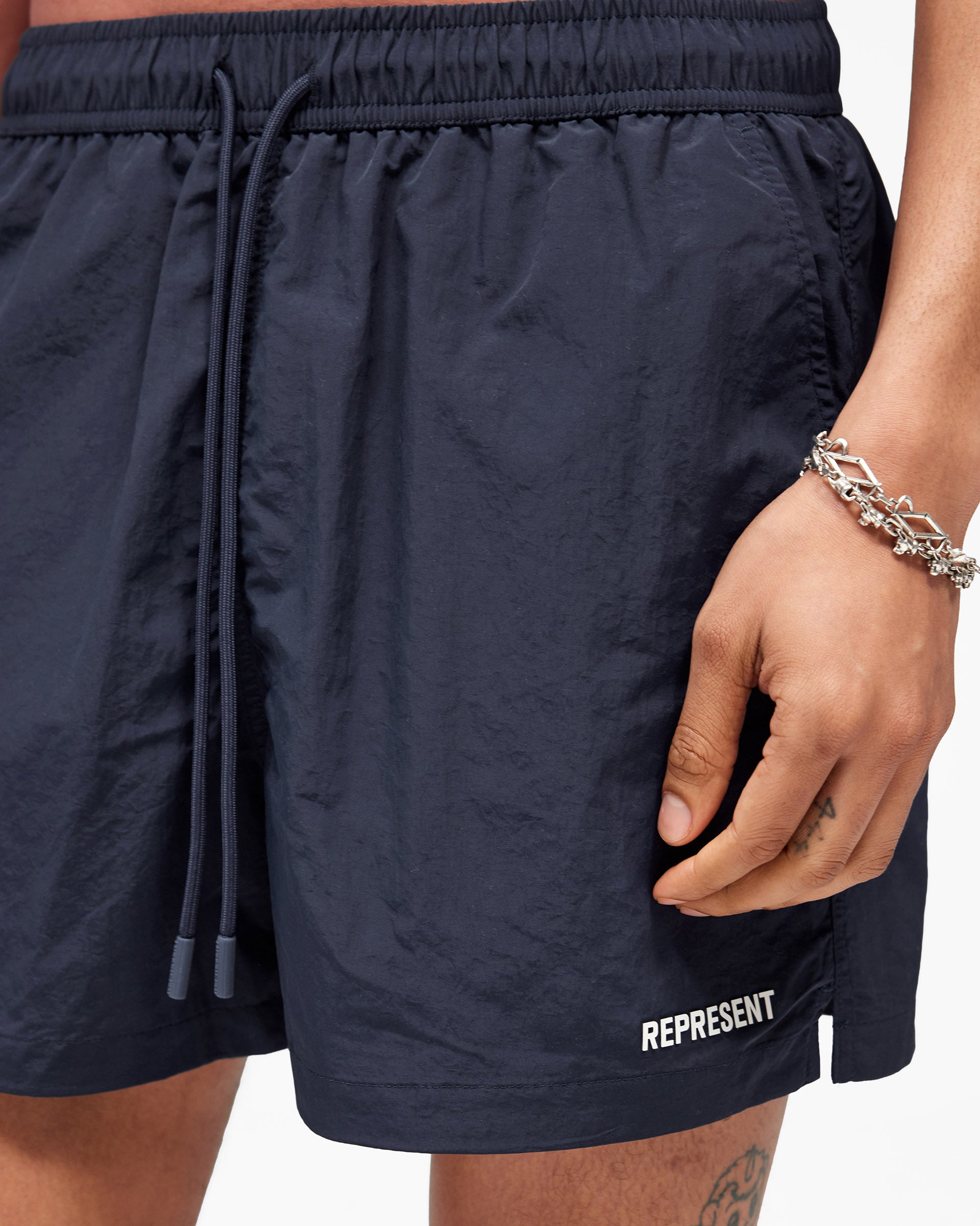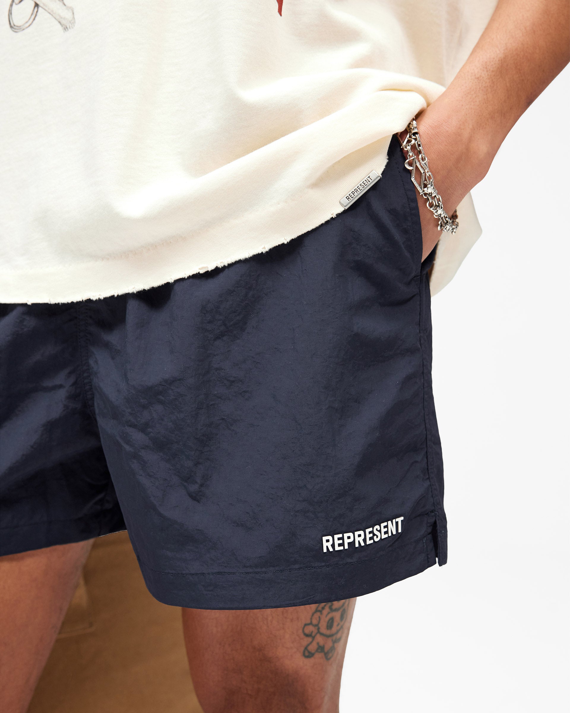 Introducing the Represent Swim Short in Navy, a quick-dry essential crafted for ease and versatility. Designed with an elasticated waistband and drawcord for a secure fit, the piece features practical side and back pockets alongside mesh lining and tonal Represent branding. Built for both poolside and coastal wear.