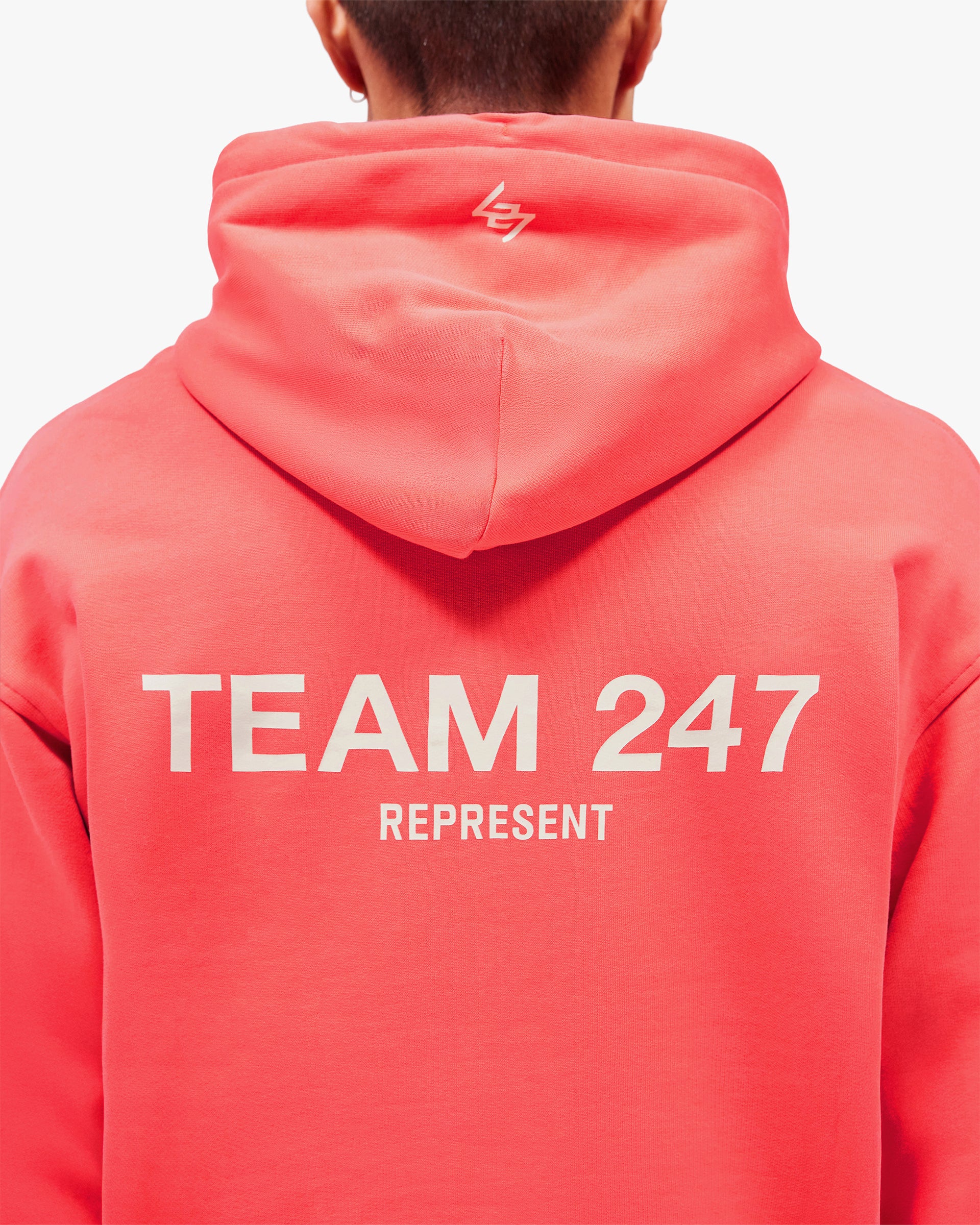 Introducing the Team 247 Oversized Hoodie in Racing Red for SS26. The ultimate warm-up layer for outdoor workouts, on the way to the gym, or whilst priming your body to train. With an oversized fit as well as a ribbed hem and cuffs, the hoodie provides unparalleled comfort whatever the endeavour. Finished with Team 247 branding to the chest and back, with tonal drawcords to the hood for an adjustable fit.