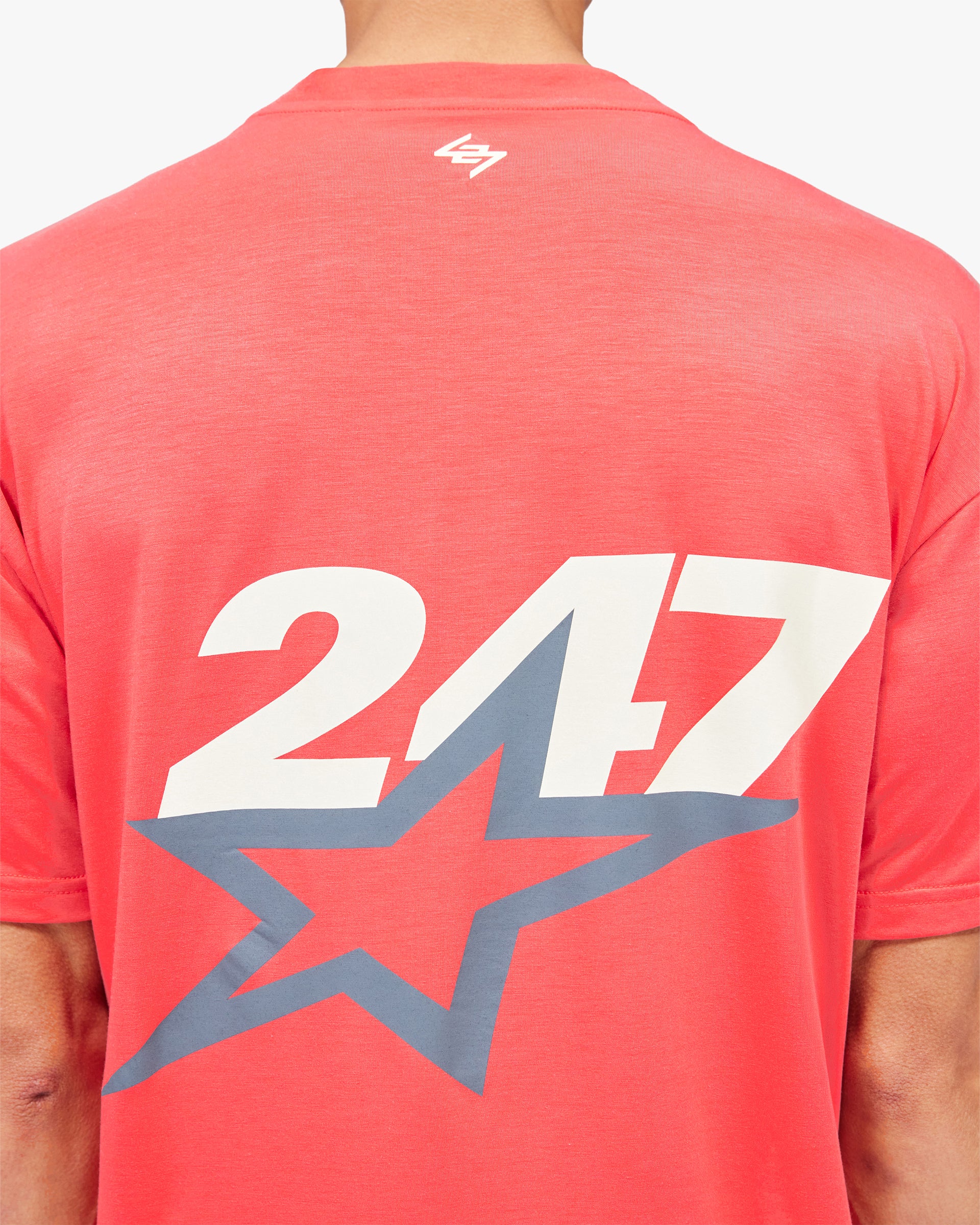 Introducing the Team 247 Star Oversized T-Shirt in Racing Red. Crafted from Dri-Release fabric with anti-bacterial and wicking finishes, this oversized silhouette delivers complete freedom of movement throughout any session. A bold star graphic carries the energy of SS26, referencing the optimism of 1980s track and field. Finished with Team 247 branding to the chest and back.