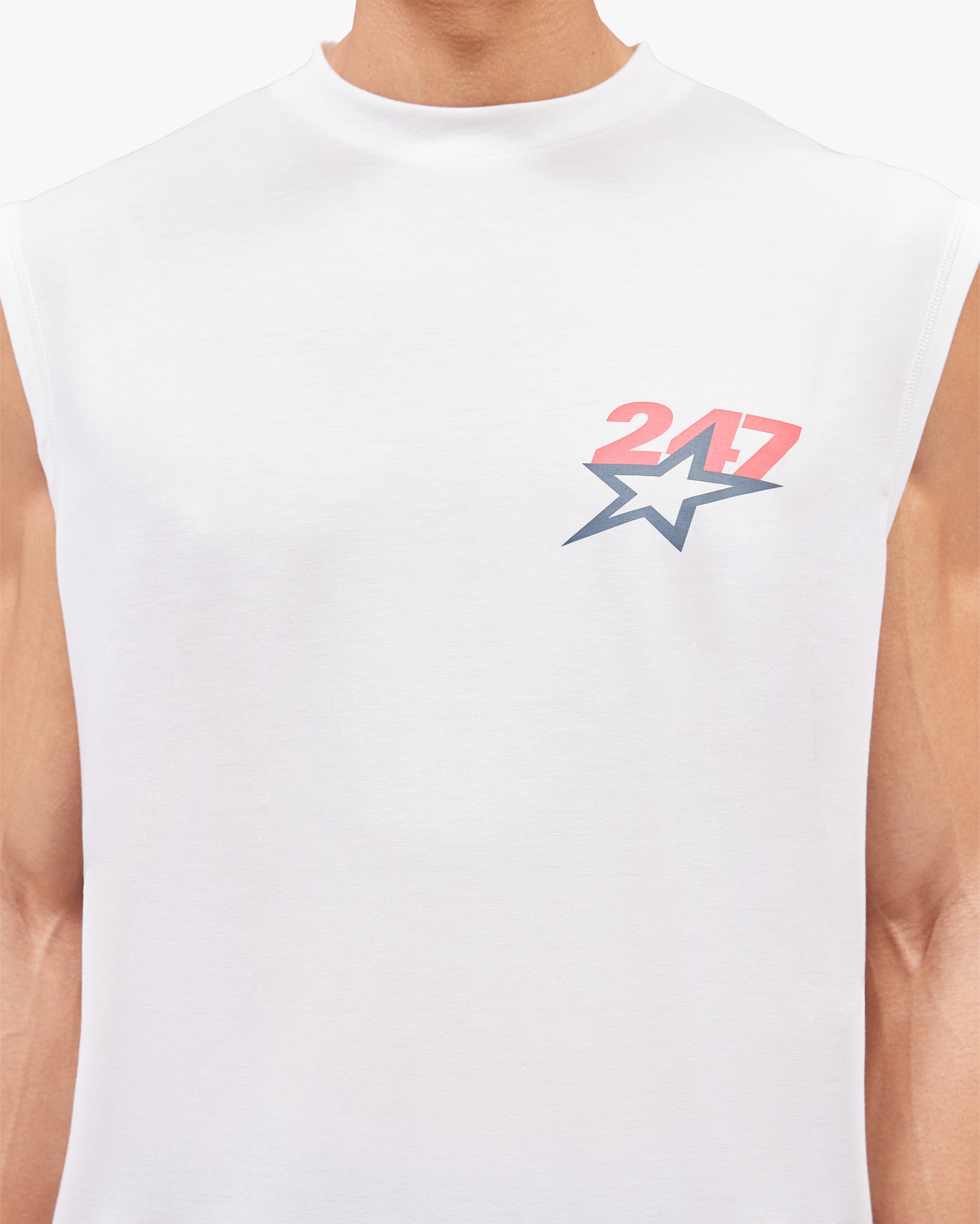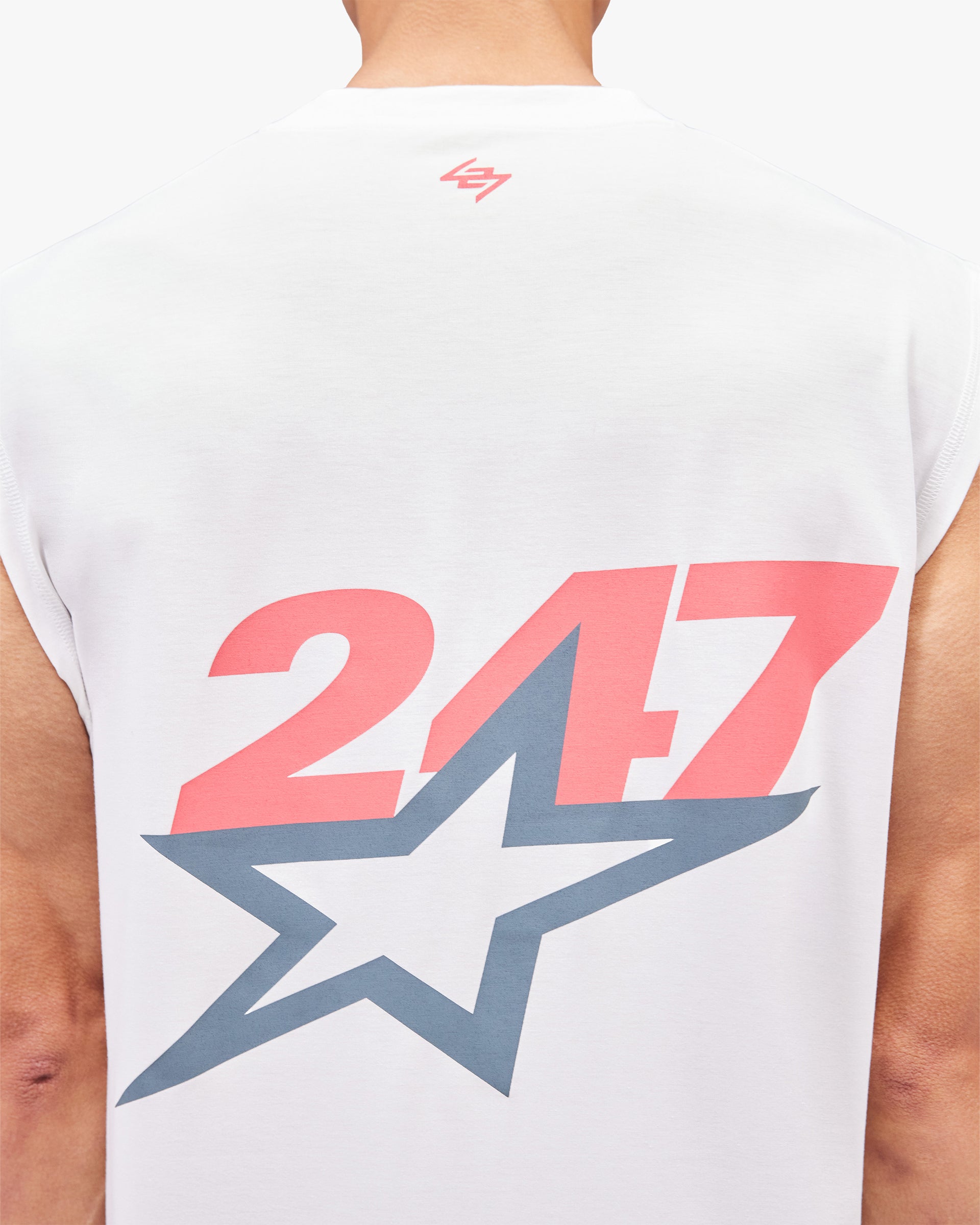 Introducing the Team 247 Star Oversized Tank in Flat White. Crafted from Dri-Release fabric with anti-bacterial and wicking finishes, this oversized silhouette delivers complete freedom of movement throughout any session. A bold star graphic carries the energy of SS26, referencing the optimism of 1980s track and field. Finished with Team 247 branding to the chest and back.