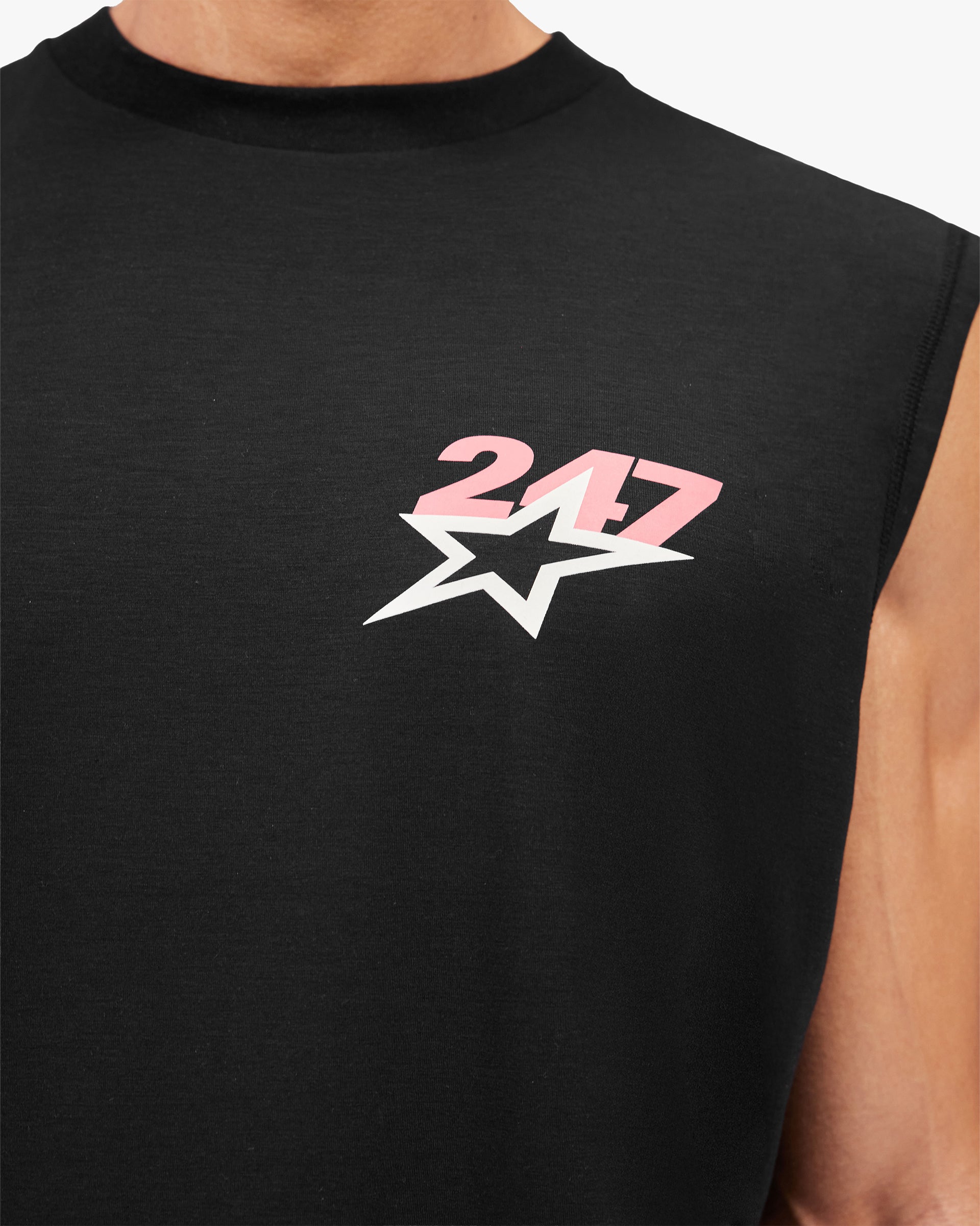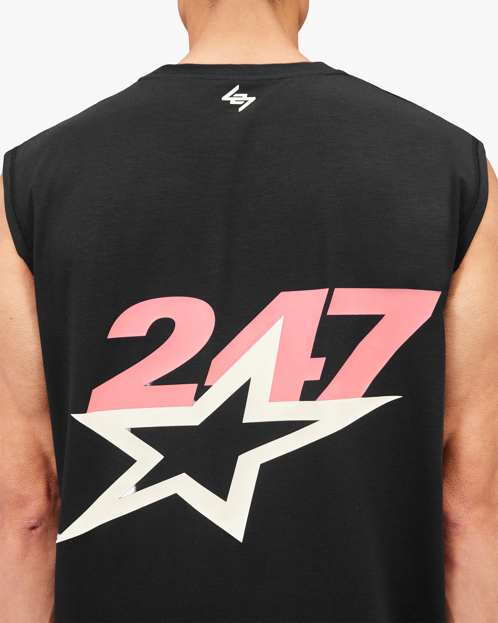Introducing the Team 247 Star Oversized Tank in Jet Black. Crafted from Dri-Release fabric with anti-bacterial and wicking finishes, this oversized silhouette delivers complete freedom of movement throughout any session. A bold star graphic carries the energy of SS26, referencing the optimism of 1980s track and field. Finished with Team 247 branding to the chest and back.